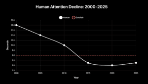 According to recent studies, the average human attention span has plummeted to just 8.25 seconds in 2025—shorter than a goldfish’s 9-second attention span. This represents a catastrophic decline from the 12 seconds we enjoyed in 2000. Even more alarming: